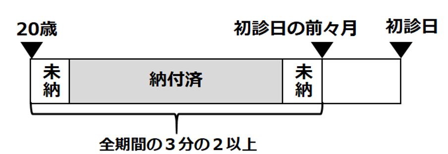 ①初診日の前々月までの納付必要期間に対して3分の2以上納付していること
